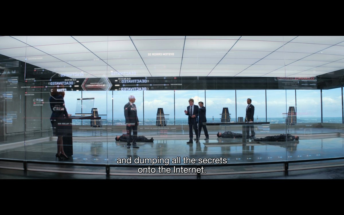 I’m very critical of Julian Assange for many many many reasons but publishing evidence of US military war crimes is not one of them. Anyway, the MCU framing of Assange as a HYDRA agent will be important later on in this movie so keep that point in mind.