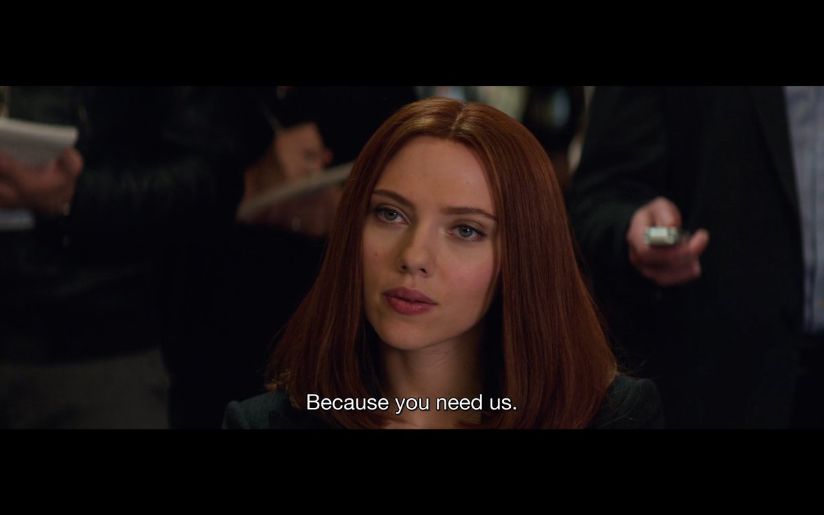 More gratuitous tracking shots following Black Widow’s butt. It’s ogling and totally unnecessary.