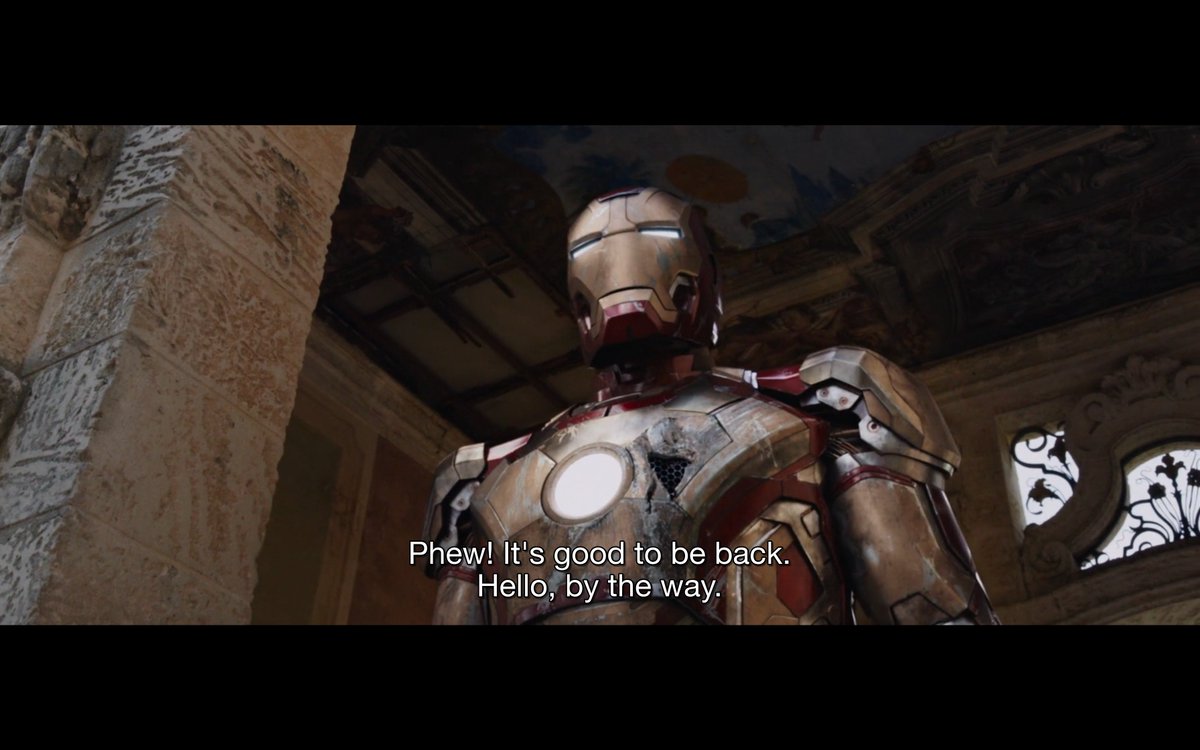 Admittedly this is a relatively minor aside but I hate that Tony treats his robot helper in an abusive way and then the robot makes sad pitiful sounds and movements in response and it’s all supposed to be hilarious.