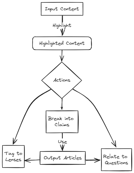 - The messy research lab and vault of knowledge, including raw data, highlights, questions, lenses, etc.